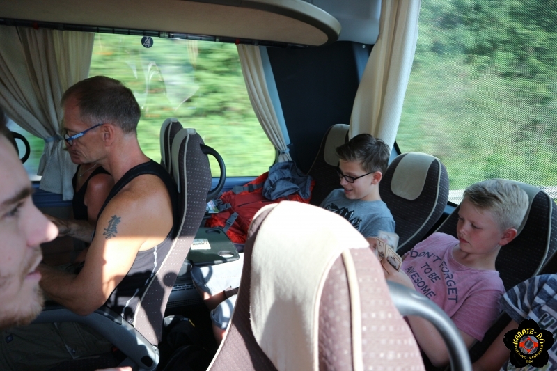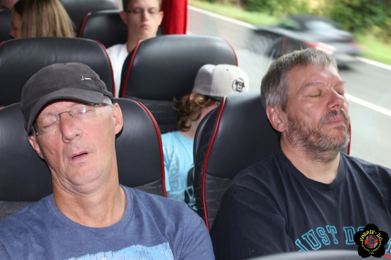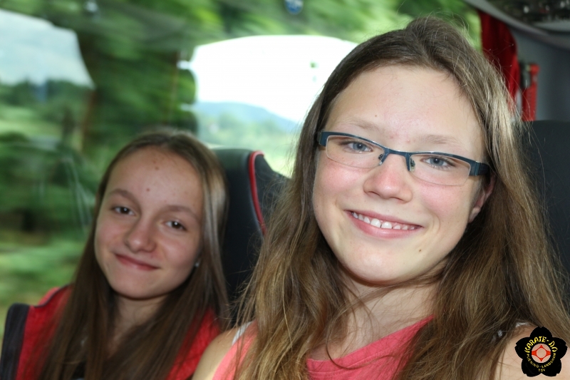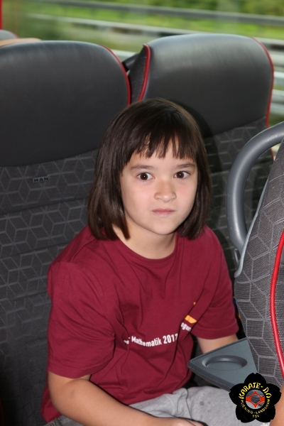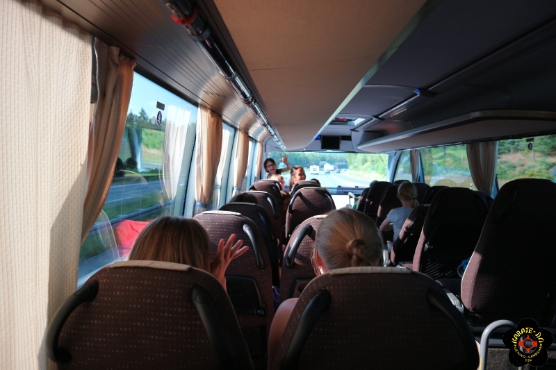 Am Freitag trafen wir uns um 15:30 Uhr auf dem Parkplatz vor der Turnhalle. Nachdem alles Gepäck im Bus verstaut war, versammelten wir uns nochmal vor dem Bus. Hier wurde den Trainern und der Abteilungsleitung zwei Gutscheine und etwas zum knappern für das Wochenende, von den Eltern und Kindern, übergeben, die sich damit für die langjährige Arbeit bedankten.