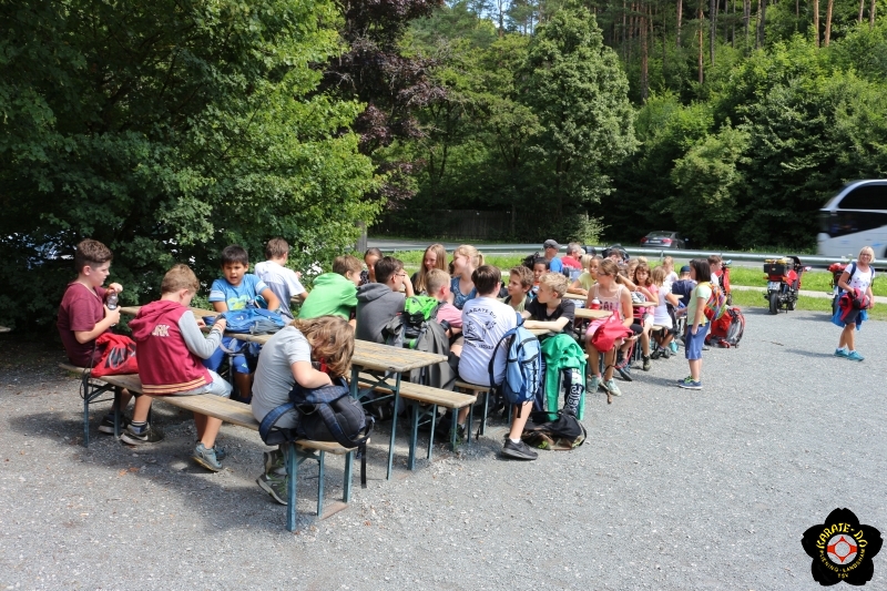 Nach einer kurzen Partie Völkerball auf dem Fußballplatz wanderten wir zur Teufelshöhle.